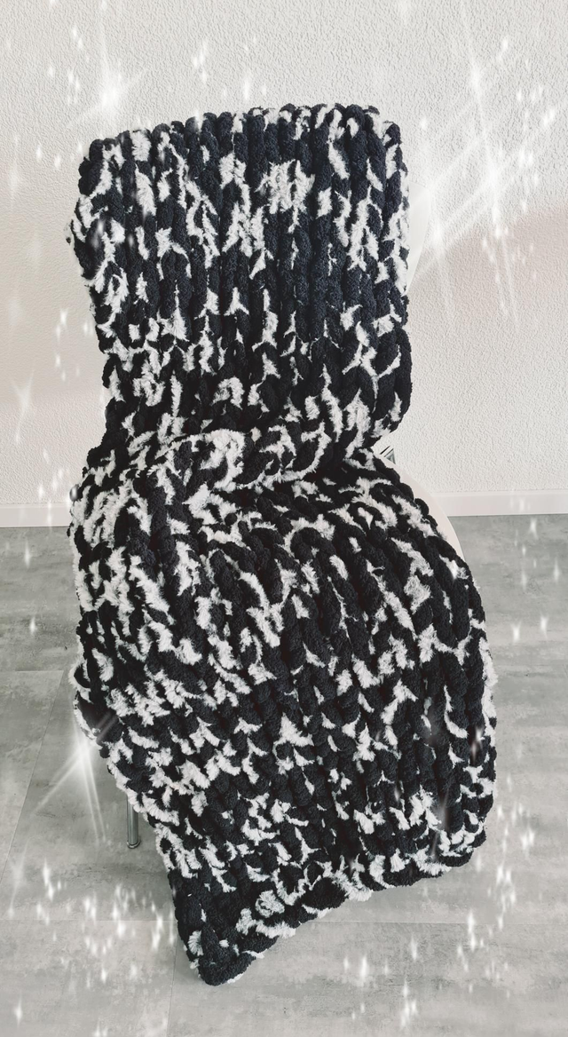 Couverture Chunky fils mix chenille/imitation fourrure noit/gris